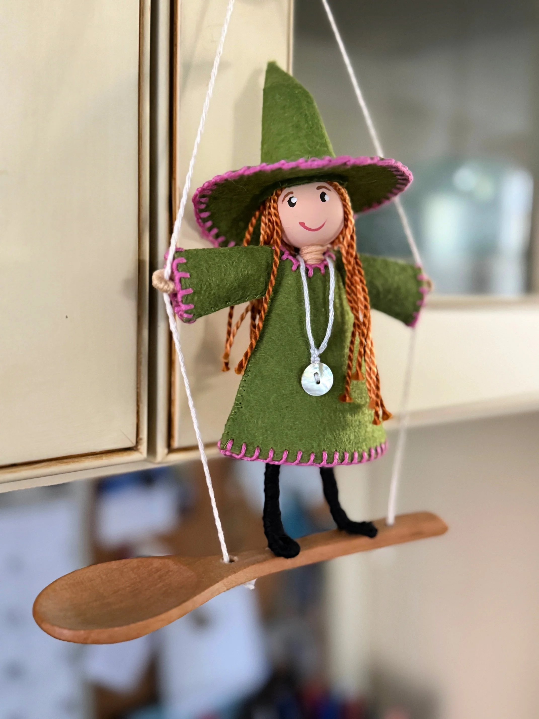 Folklore tells us that a Kitchen Witch is a good Witch who is tasked with bringing in good fortune and warding off bad spirits, making the kitchen a joyful, cozy and comfortable place to be. The Kitchen Witch is a gentle whimsical creature, and a symbol of warmth, happiness and protective magick in the home.
